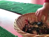 Épreuves variées : course d’escargots (patience), relais des chenilles (persévérance) et le repas de la grenouille (courage).